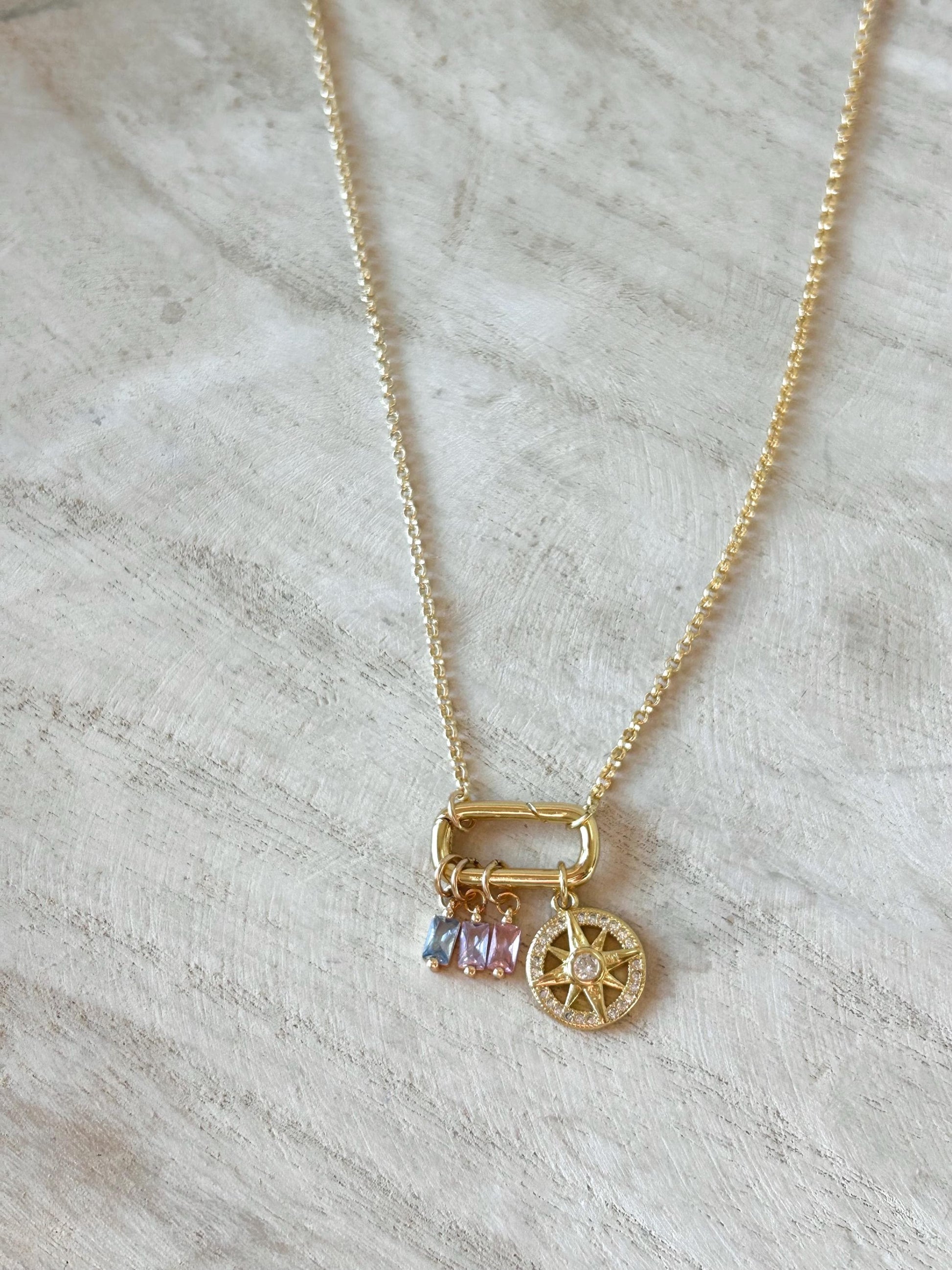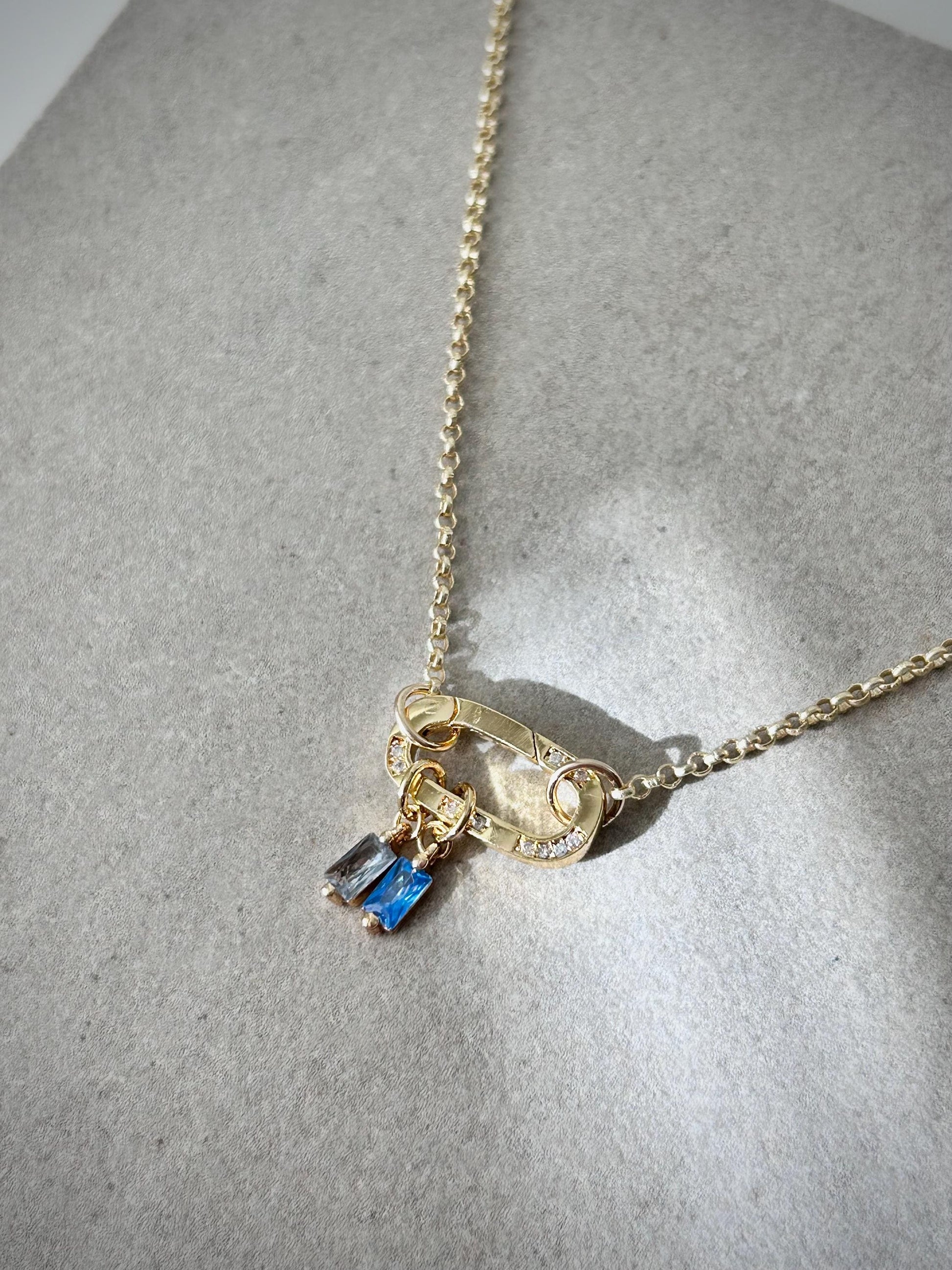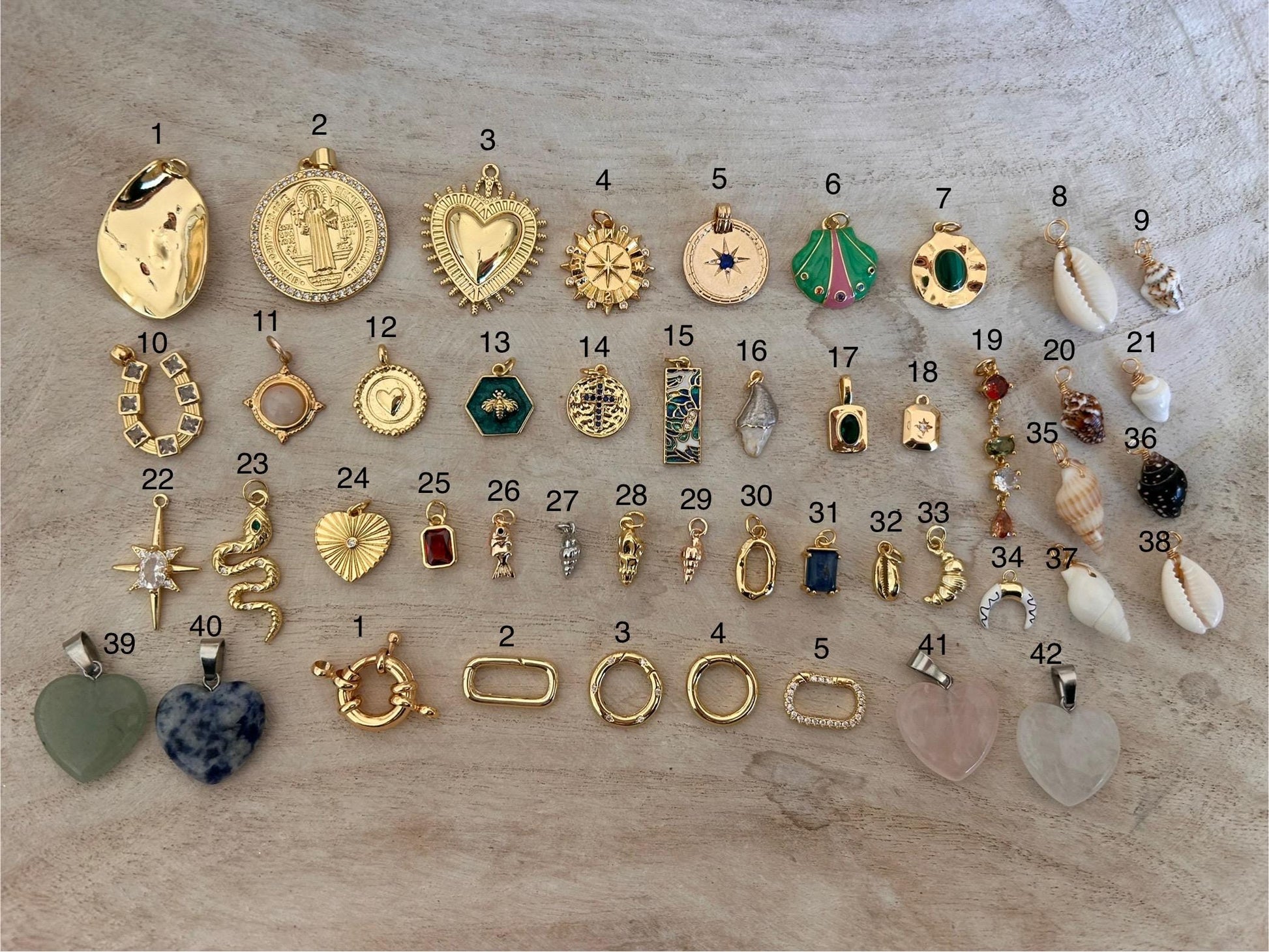 all metal hardware is gold-filled + tarnish resistant. all charms are hand-sourced. the chain is an 18 inch rolo chain. all pieces are made to order and joints are hand-welded.