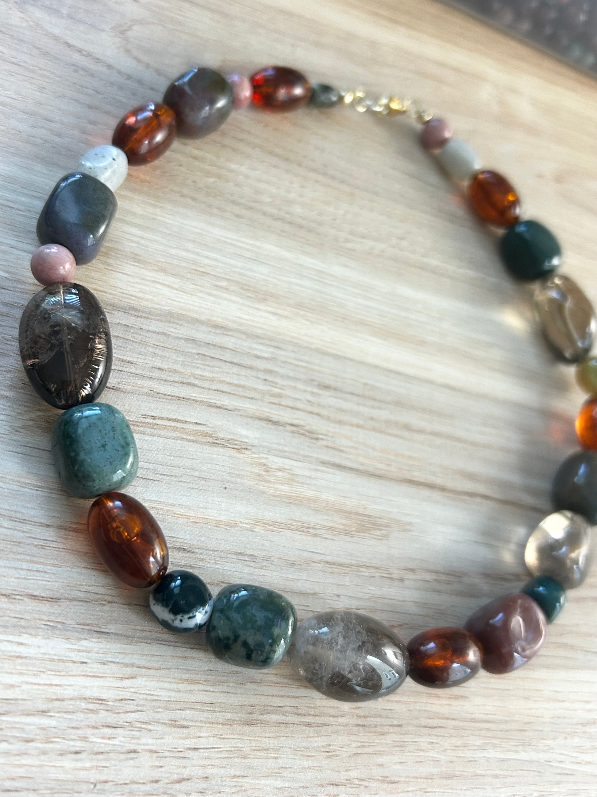 + smoky quartz, bloodstone, lucite, rhodochrosite,