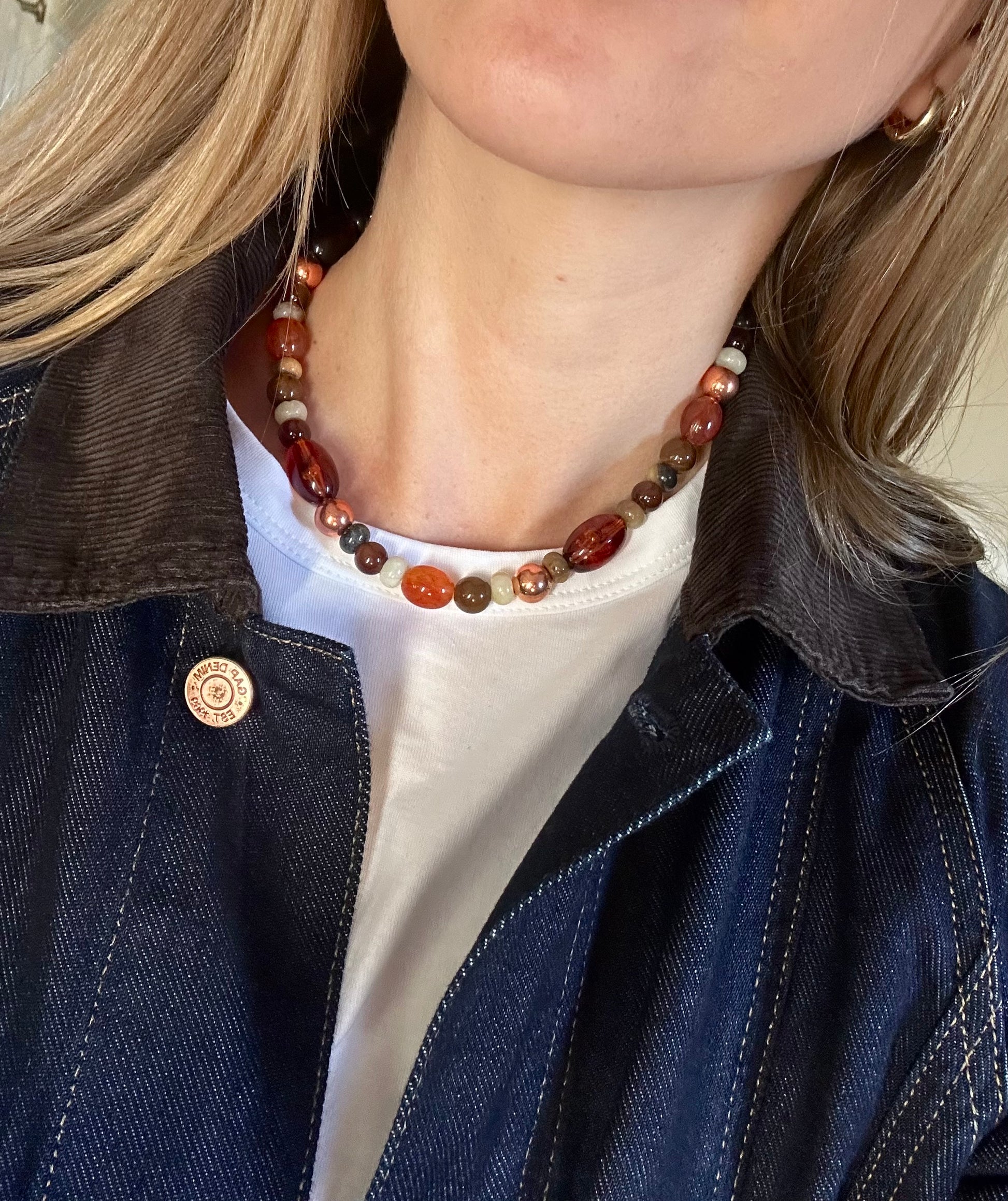 + beads are hand sourced+ colors may slightly vary+ joints are hand welded+ metal is tarnish resistant